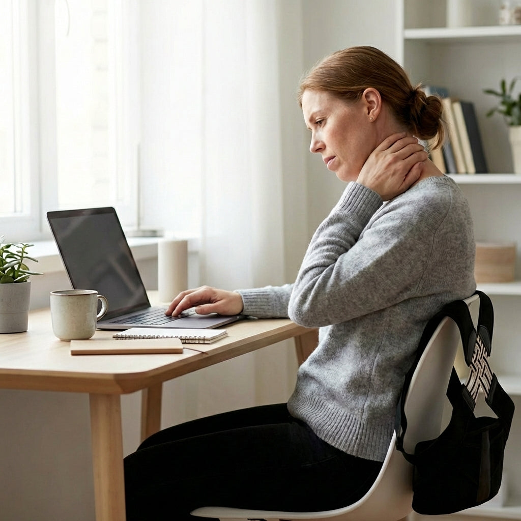 Efter bara några timmar börjar nacke och rygg kännas stela, och utan att du märker det sjunker axlarna långsamt fram. Du försöker räta på dig och sitta rakt, men efter en stund faller hållningen tillbaka igen.